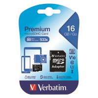 Verbatim MicroSDHC Memory Card Class 10 16GB With Adaptor 44082