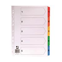 Q-Connect 1-5 Index Multi-punched Reinforced Board Multi-Colour Numbered Tabs A4 White KF01518