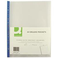 Q-Connect Delux Punched Pocket Top Opening Blue Strip A4 Clear (Pack of 25) KF01122