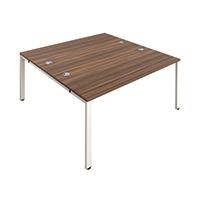 Jemini 2 Person Bench Desk 1400x1600x730mm Dark Walnut/White KF809074