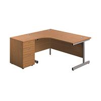First Radial Left Hand Desk with Pedestal 1600x800-1200mm Nova Oak/Silver KF803263