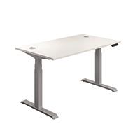 Jemini Sit/Stand Desk with Cable Ports 1200x800x630-1290mm White/Silver KF809739