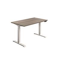 Jemini Sit/Stand Desk with Cable Ports 1600x800x630-1290mm Grey Oak/White KF810001
