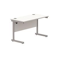 Astin Rectangular Single Upright Cantilever Desk 1200x600x730mm Arctic White/Silver KF803507