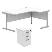 Astin Radial Right Hand SU Desk +Desk High Pedestal 1600x1200 Arctic White/Silver KF820097
