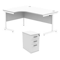 Astin Radial Left Hand SU Desk +Desk High Pedestal 1600x1200 Arctic White/Arctic White KF820107