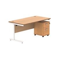 Astin Rectangular Desk 1600x800x730mm +2Drw Under Desk Pedestal Norwegian Beech/White KF820177