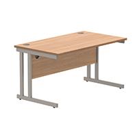 Polaris Rectangular Double Upright Cantilever Desk 1400x800x730mm Norwegian Beech/Silver KF822060