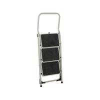 Folding Step Stool 3 Tread High Back White Aluminium 402791