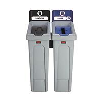 Rubbermaid Slim Jim Recycling Station 2 Stream Black/Blue 2057605