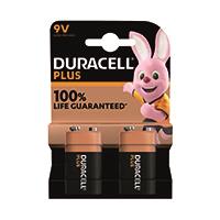 Duracell Plus 9V Battery Alkaline 100% Life (Pack of 2) 5011416