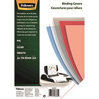 Fellowes Clear PVC Covers for Wire and Com Binding Machines 240 Micron (Pack of 100) 53762