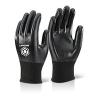 Beeswift Nitrile Fully Coated Polyester Gloves Black XL Header Card NDGFCBHCXL