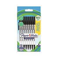 Paper Mate 2187678 Kilometrico Recycled Black Ball Pen pack of 8 pens
