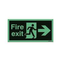 Safety Sign Niteglo Fire Exit Running Man Arrow Right Self-Adhesive 150x450mm NG26A/S