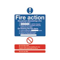 Safety Sign Fire Action Standard A5 PVC (Can fill in site speCIFic information) FR03551R