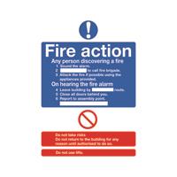 Safety Sign Fire Action Words A4 Self Adhesive FR03550S